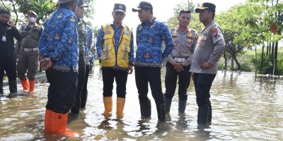 Bupati Sidoarjo H. Subandi beserta Kapolresta Sidoarjo Kombes Pol Christian Tobing dan Dandim 0816 Sidoarjo Letkol Inf Dedyk Wahyu Widodo melakukan Sidak kelokasi banjir.