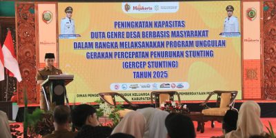 (56 Views) April 15, 2025 10:58 pm | Published by mediaelangnusantara.net | Comments Off on Duta Genre Desa Diperkuat, Pemkab Mojokerto Genjot Program Gercep Stunting 2025ELANGNUSANTARA.NET, Kabupaten Mojokerto – Upaya Pemerintah Kabupaten (Pemkab) Mojokerto dalam menurunkan angka stunting terus digencarkan. Salah satu langkah strategis dilakukan melalui peningkatan kapasitas Duta Genre Desa berbasis masyarakat dalam rangka melaksanakan program unggulan Gerakan Percepatan Penurunan Stunting (Gercep Stunting) tahun 2025.