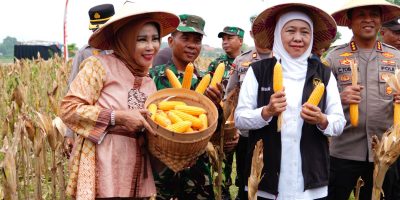 ELANGNUSANTARA,SIDOARJO – Wakil Bupati Sidoarjo, Hj. Mimik Idayana, bersama Gubernur Jawa Timur Khofifah Indar Parawansa, Kapolda Jatim Irjen Pol Nanang Avianto, dan Kapolresta Sidoarjo Kombes Pol Christian Tobing memimpin langsung panen raya jagung kuartal I tahun 2026 di Desa Kedensari, Kecamatan Tanggulangin, Kamis (8/1/2026). Panen raya jagung ini merupakan bagian dari upaya nasional dalam menjaga stabilitas dan ketahanan pangan di bawah arahan Presiden Prabowo Subianto.