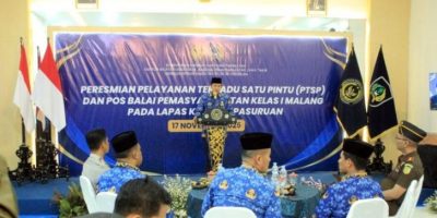 PASURUAN, ELANGNUSANTARA – Wakil Wali Kota Pasuruan, M. Nawawi menghadiri peresmian Pelayanan Terpadu Satu Pintu (PTSP) dan Pos Balai Pemasyarakatan (Bapas) Kelas I Malang di Lapas Kelas IIB Kota Pasuruan, Senin (17/11/2025).